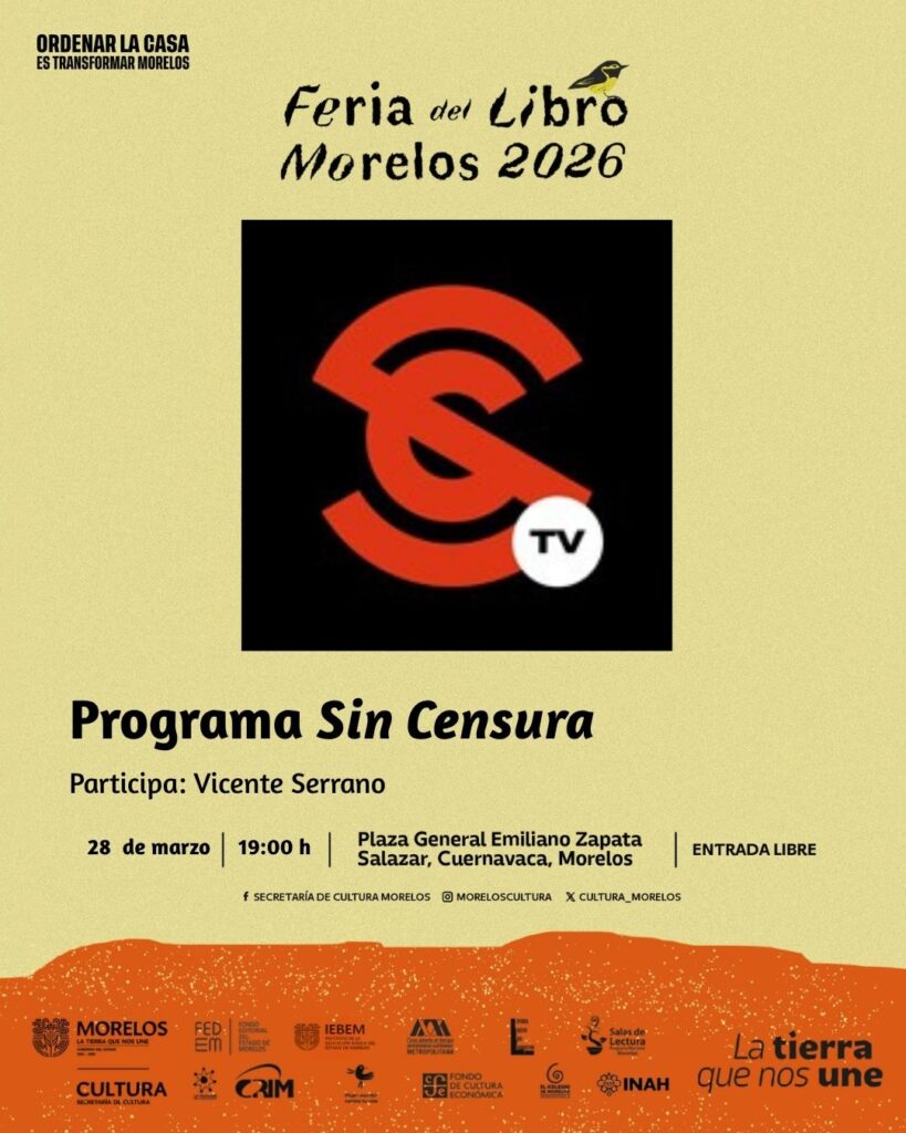 Esta tarde se presentará el periodista independiente, Vicente Serrano en la Feria del Libro Morelos 2026 en la Plaza General Emiliano Zapata Salazar. A las…