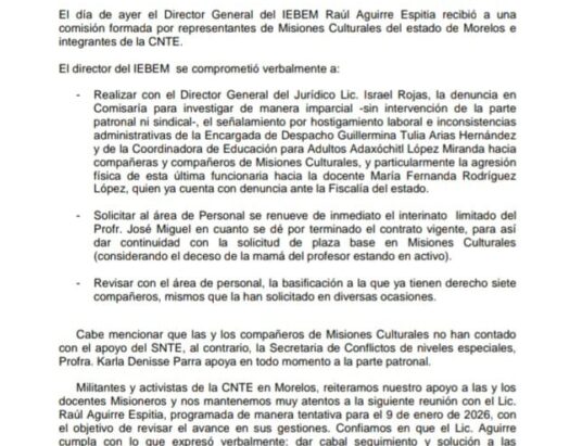 ● Se visitaron mil uno centros laborales y se benefició a más de 6 mil personas trabajadoras en todo el estado El Gobierno de Morelos “La tierra que nos une” concluyó el operativo de orientación “Aguinaldo 2025”, durante el mes de diciembre, mediante el cual se acercó información clara y oportuna sobre esta prestación obligatoria a centros de trabajo de distintos municipios del estado, como parte de las acciones permanentes…