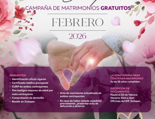 El Ayuntamiento y el DIF Jiutepec te invitan a ser parte de la campaña de matrimonios gratuitos. ✅ No dejes pasar esta oportunidad para darle el sí a la persona que amas sin costo alguno. 💕 Acude a las oficinas del DIF Jiutepec y entrega tus documentos. Tienes hasta el 20 de febrero para ser parte de esta gran experiencia. 👊🏽 Jiutepec #Matrimonios #DIF
