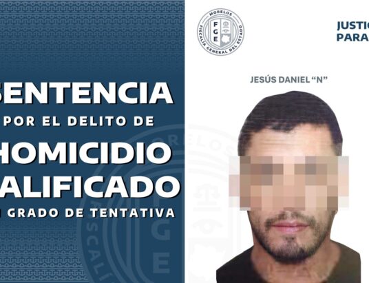 • El Tribunal lo encontró penalmente responsable de los delitos de homicidio calificado en grado de tentativa y de daños• Disparó contra una unidad oficial en el poblado de Huajintlán, en hechos suscitados en 2020 La Fiscalía General del Estado (FGE) de Morelos obtuvo de la autoridad judicial una sentencia ejemplar en contra de Jesús Daniel “N”, hallado penalmente responsable de homicidio calificado en grado de tentativa y daños, en…