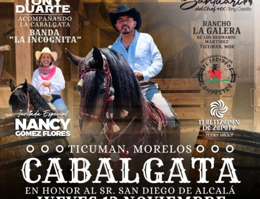 En honor a San Diego de Alcalá, se realizará la gran Cabalgata Tradicional este 13 de noviembre, a partir de las 11:00 A.M., con salida desde el restaurante El Jaripeo. Ven y sé parte de esta celebración llena de fe, música, alegría y espíritu charro que distingue a nuestro querido Tlaltizapán. 🇲🇽