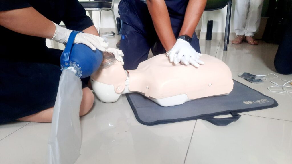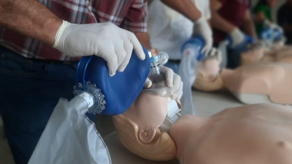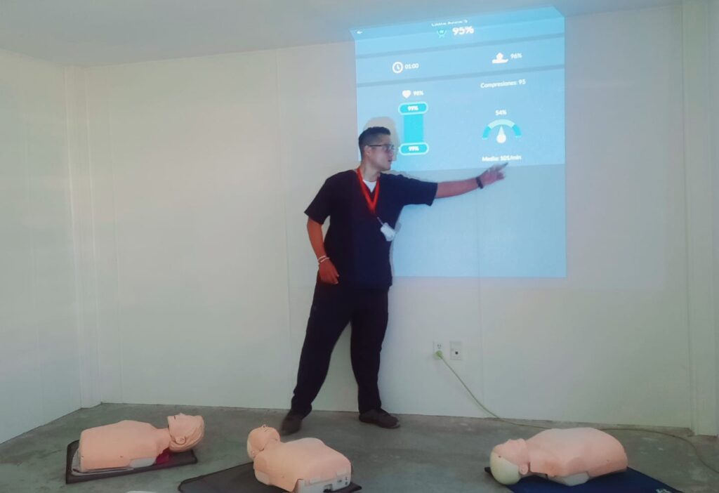 En forma teórica y práctica se explicó a los asistentes en qué consiste la Reanimación Cardiopulmonar (RCP), la ventilación manual y el uso de un DEA con sensores (electrodos).