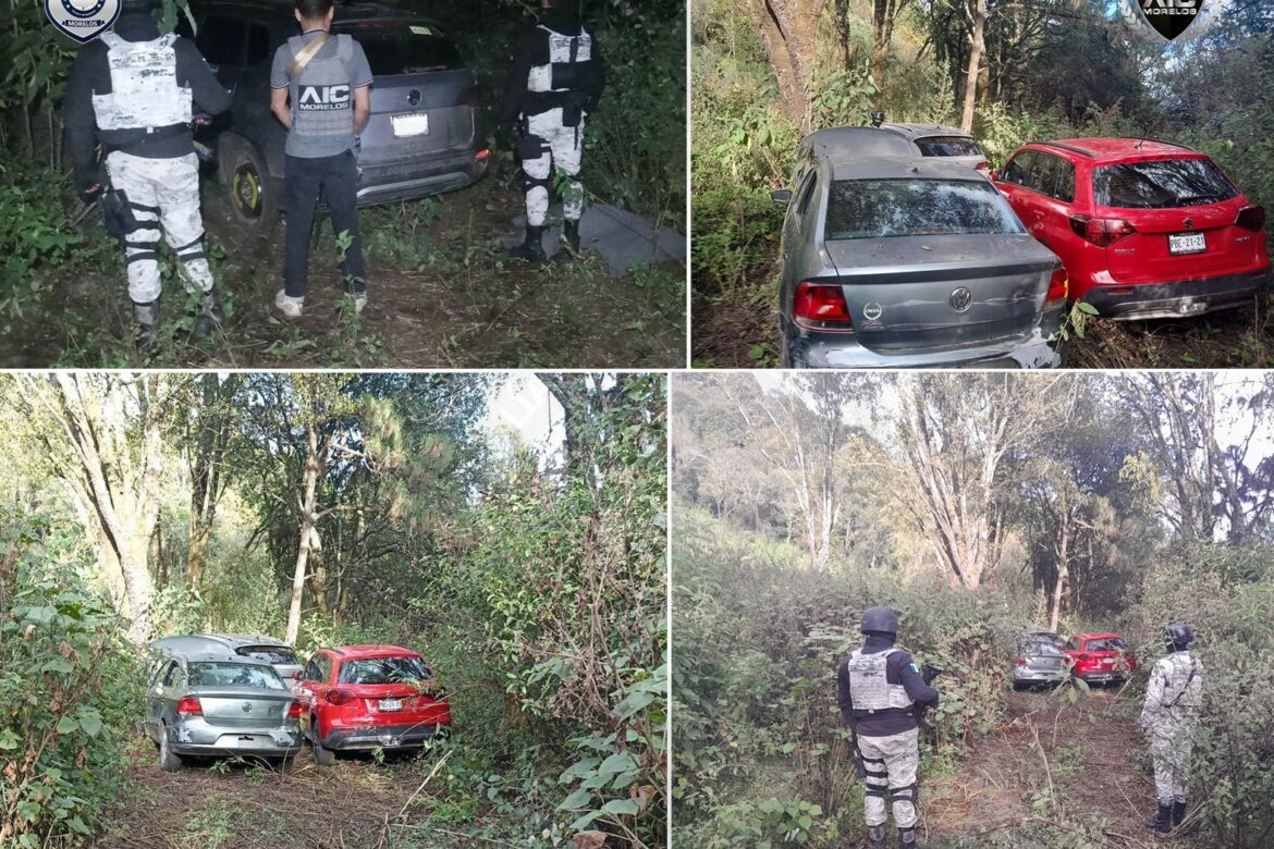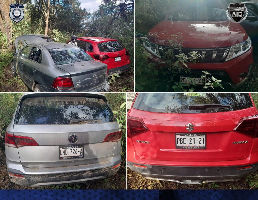 En despliegue coordinado entre la Fiscalía General del Estado y la Guardia Nacional, en zona boscosa del municipio de Huitzilac fueron recuperados tres vehículos, mismos que cuentan con reporte de robo vigente.