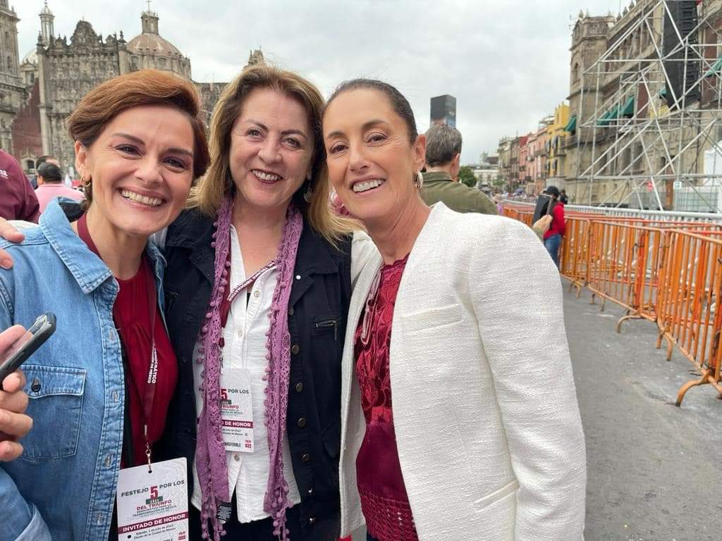Durante el festejo en el zócalo capitalino,, tuvo la oportunidad de saludar a Mario Delgado, dirigente nacional de Morena y a Claudia Sheinbaum, exjefa de Gobierno de la CDMX.