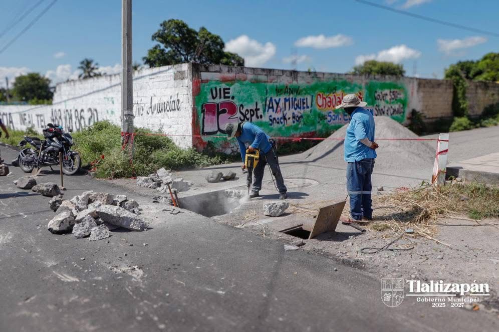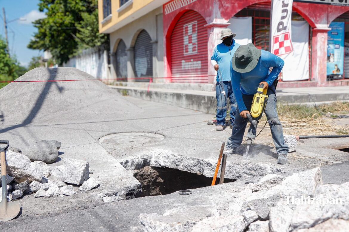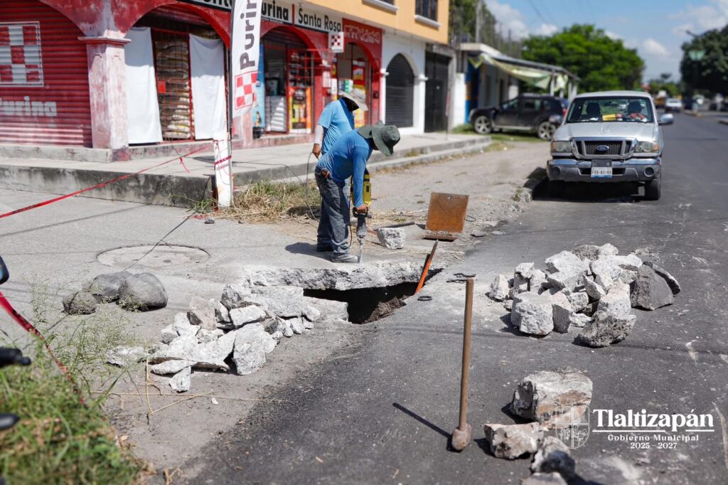Un socavón generado por una fuga de agua potable en la colonia Otilio Montaño fue atendido de manera inmediata por el gobierno municipal, con el respaldo de la presidenta Nancy Gómez Flores.