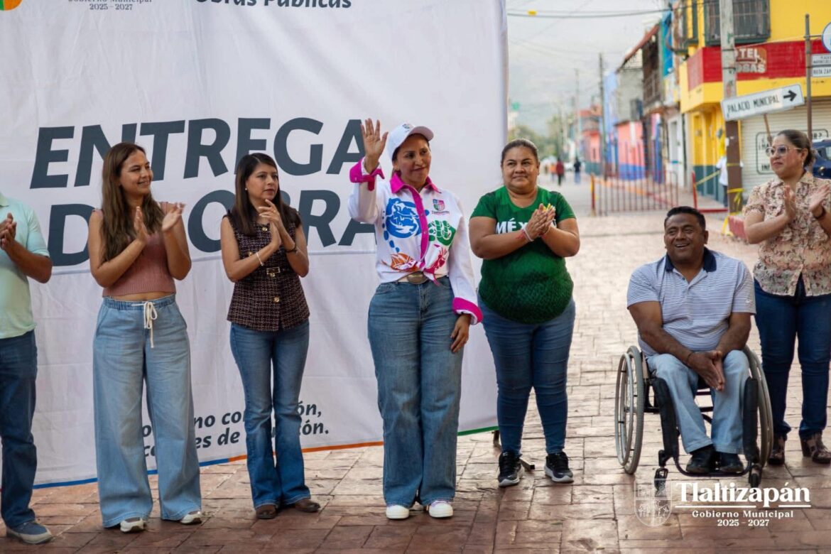 La presidenta municipal de Tlaltizapán de Zapata, Nancy Gómez Flores, entregó la segunda etapa de pavimentación de la calle 5 de Febrero, en la colonia Centro.