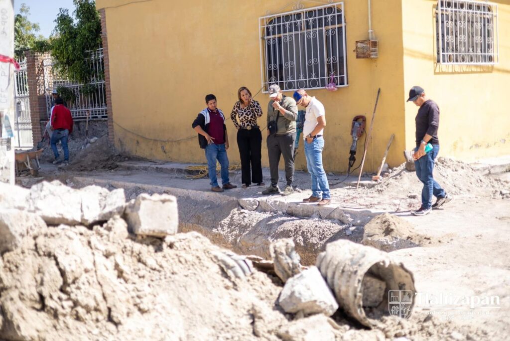 En el centro del barrio de San Marcos, la alcaldesa verific贸 la atenci贸n a un socav贸n generado por fallas en el drenaje sanitario sobre la calle Nicol谩s Bravo.
