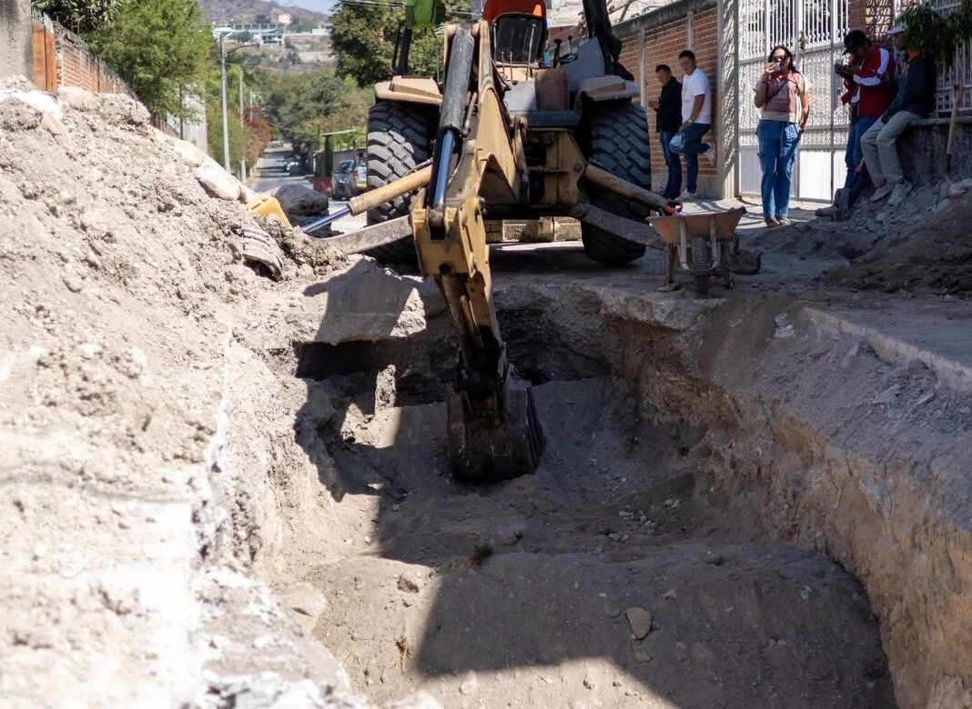 Posteriormente, en la calle San Juan de la colonia Plan de Ayala, constat贸 la conclusi贸n de los trabajos para sustituir un drenaje colapsado.