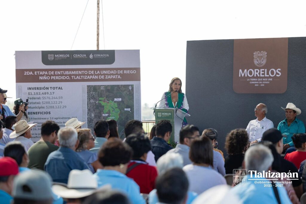 Con una inversión conjunta de los gobiernos federal, estatal y municipal, el Gobierno Municipal de Tlaltizapán de Zapata, encabezado por Nancy Gómez Flores, presidenta municipal, acompañó la entrega de la segunda etapa de una obra para el aprovechamiento del agua en la Unidad de Riego “Niño Perdido”, acción que fortalece la producción agrícola y brinda certeza a las familias del campo.