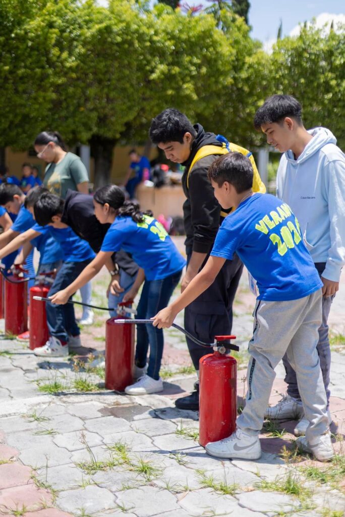 NiΓ±as y niΓ±os participaron esta semana en el Curso de Verano βBomberos Temixco 2024β, donde aprendieron sobre la prevenciΓ³n de accidentes, bΓΊsqueda y rescate, primeros auxilios, uso y manejo de extintores, quemaduras, fracturas, vendajes, reanimaciΓ³n cardiopulmonar, signos vitales, atragantamiento, heridas y hemorragias, orden cerrado, prevenciΓ³n de incendios, entre otras actividades.