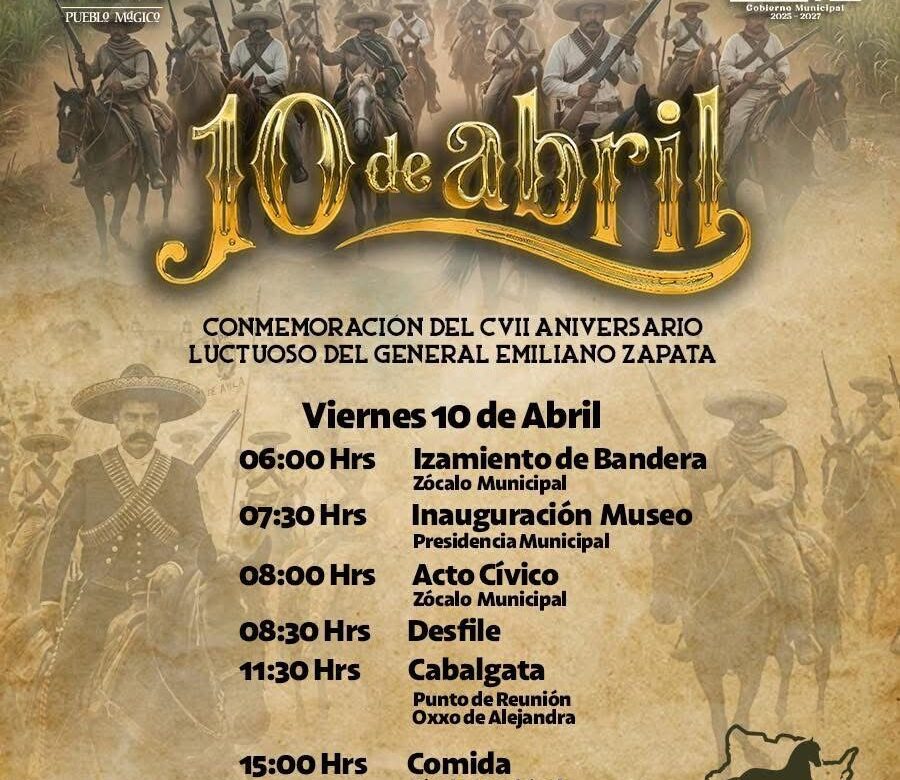 Vive la Conmemoración del CVII Aniversario Luctuoso del General Emiliano Zapata, una jornada llena de historia, identidad y orgullo en nuestro Pueblo Mágico.