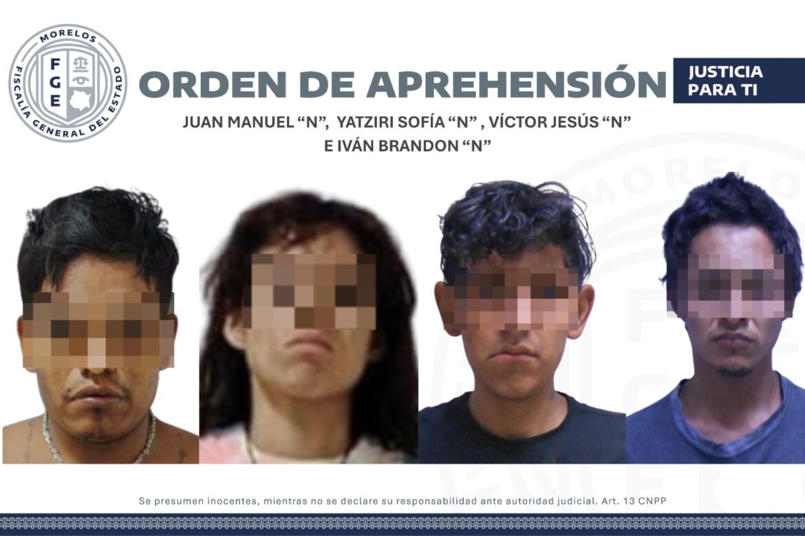 Los ahora aprehendidos responden a los nombres de Yatziri Sofía “N”, Juan Manuel “N”, Víctor Jesús “N” e Iván Brandon “N”.