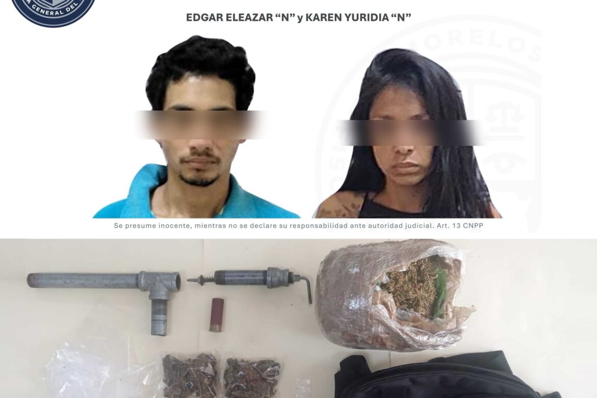 Elementos de la Agencia de Investigación Criminal (AIC) de la Fiscalía Regional Metropolitana detuvieron a Edgar Eleazar “N” y Karen Yuridia “N” en posesión de droga y un arma de fabricación artesanal, tras romper los sellos colocados por un agente del Ministerio Público (MP) especializado e ingresar a un inmueble asegurado en días pasados en un cateo en la colonia Lagunilla de Cuernavaca.