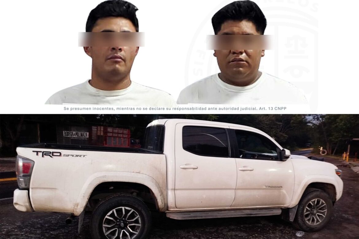 Gracias a una denuncia anónima, elementos de la Agencia de Investigación Criminal (AIC) de la Fiscalía Regional Sur Poniente detuvieron en flagrancia a Ángel Nathan “N” y David Alexis “N” en posesión de dinero y varias presuntas dosis de droga, a bordo de una camioneta en el municipio de Amacuzac.
