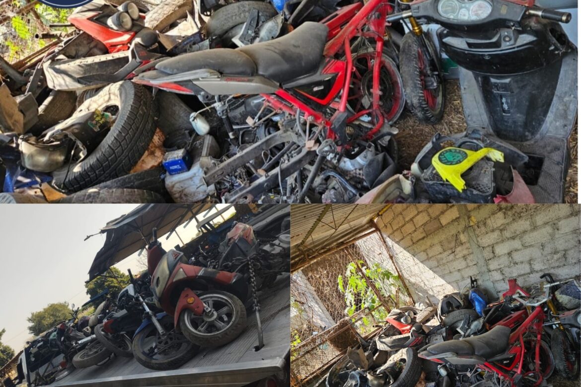 Elementos de la Agencia de Investigación Criminal (AIC) de la Fiscalía Regional Oriente localizaron y aseguraron, en un predio del municipio de Yautepec, diez motocicletas con huellas de desvalijamiento y cuatro motores para dichos vehículos, durante una diligencia de investigación.
