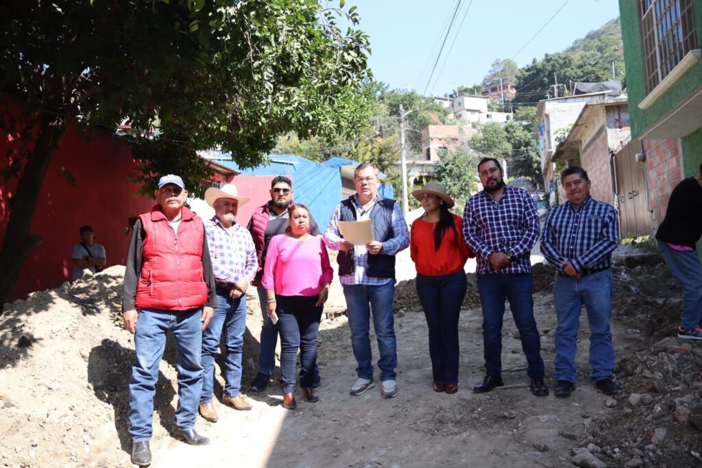 La tarde de este viernes el alcalde Rafael Reyes e integrantes del Ayuntamiento de Jiutepec realizaron una supervisión a la construcción de la red de agua potable y pavimento con concreto hidráulico en la calle 20 de noviembre de la colonia Cerro de la Corona, así como a la construcción de un drenaje pluvial y pavimento con concreto hidráulico en la calle Ignacio López Rayón de la colonia Jardín Juárez.