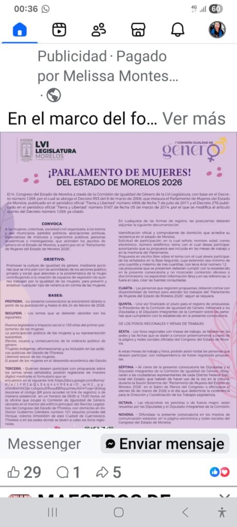 En un esfuerzo por consolidar la democracia paritaria y fortalecer la participación política femenina, el H. Congreso del Estado de Morelos, a través de la Comisión de Igualdad de Género de la LVI Legislatura, ha lanzado oficialmente la convocatoria para integrar el “Parlamento de Mujeres del Estado de Morelos 2026”.