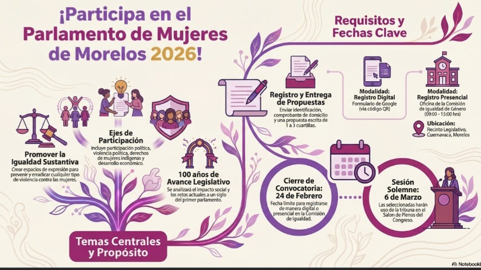 En un esfuerzo por consolidar la democracia paritaria y fortalecer la participación política femenina, el H. Congreso del Estado de Morelos, a través de la Comisión de Igualdad de Género de la LVI Legislatura, ha lanzado oficialmente la convocatoria para integrar el “Parlamento de Mujeres del Estado de Morelos 2026”.