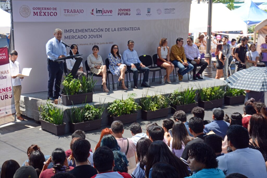 Con el objetivo de continuar generando mayores oportunidades laborales en Cuernavaca a través de la recuperación de empleos formales, el presidente municipal, José Luis Urióstegui Salgado, participó este miércoles en la implementación de la estrategia Mercado Joven en la capital morelense, donde mediante el programa Jóvenes Construyendo el Futuro se estarán ofertando mil 500 incorporaciones.