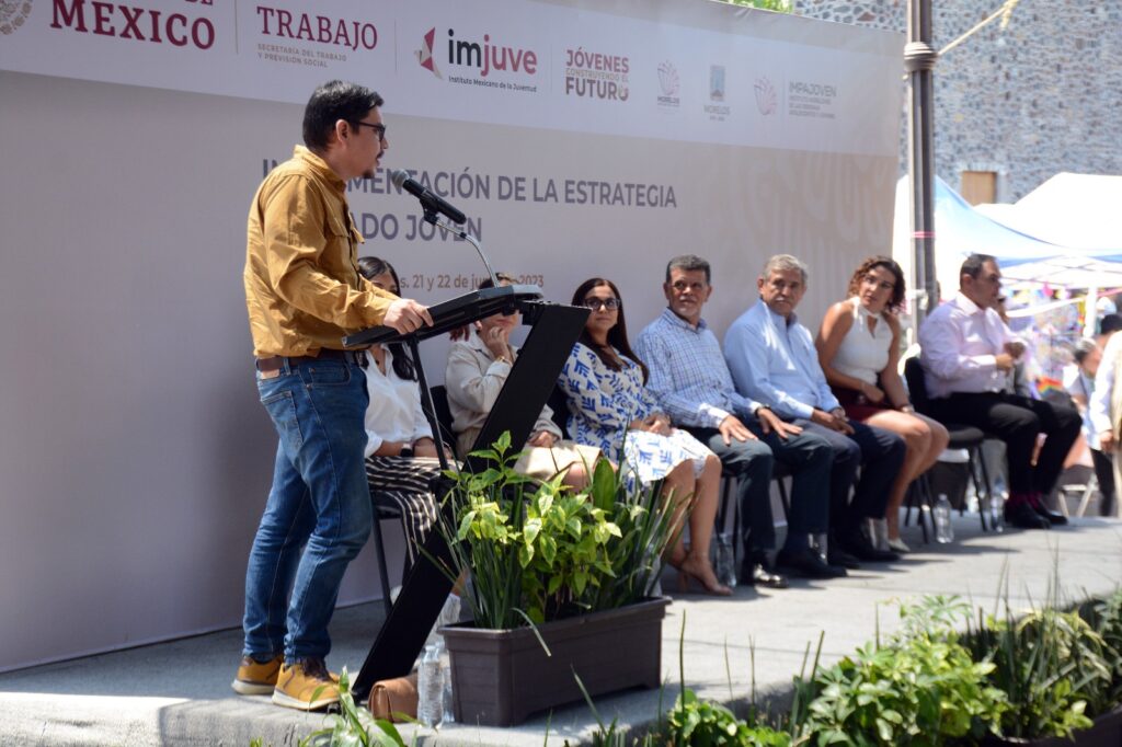 En su intervención, la directora estatal del programa Jóvenes Construyendo el Futuro, Denisse Molina Romero, subrayó que por primera ocasión en la historia del país se está considerando a los jóvenes como sujetos de derecho, primero al trabajo digno y segundo brindándoles seguridad social de manos del Instituto Mexicano del Seguro Social (IMSS), por lo cual solicitó a los presentes no dejar que nada ni nadie les quite estos derechos, aclarando que no cuentan con gestores.