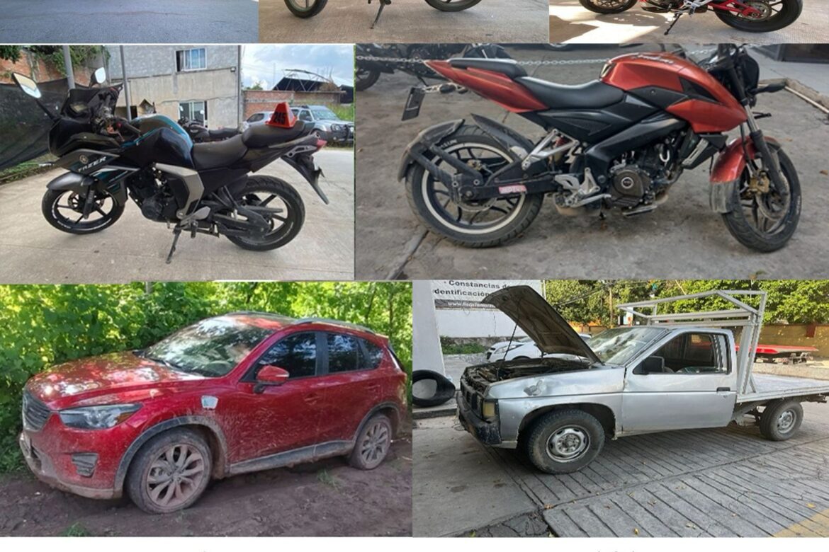• Agentes recuperaron cuatro motocicletas, dos camionetas y un coche