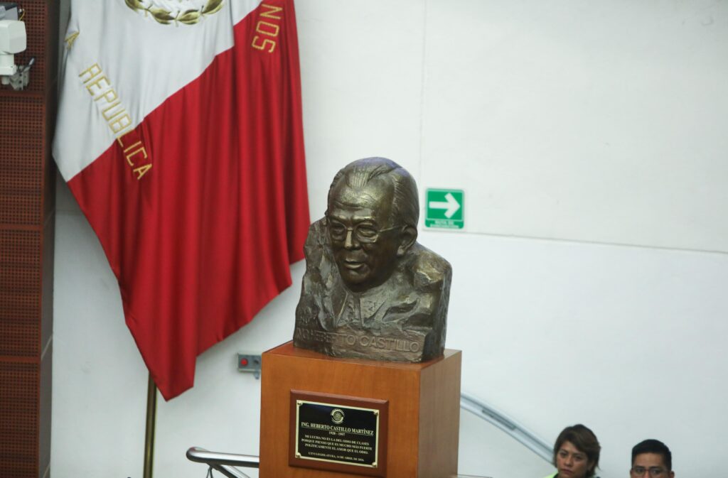 La gobernadora Margarita González Saravia asistió al Senado de la República a la sesión solemne en homenaje al ingeniero Heberto Castillo Martínez, donde se inscribió su nombre en el salón de la Comisión Permanente y se develó su busto como reconocimiento a su legado en la vida democrática del país.