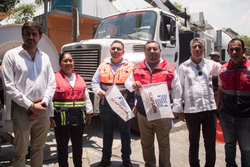 Con el objetivo de efectuar acciones que coadyuven al apoyo y mitigación de riesgos de inundación ante la presencia de fenómenos hidrometereológicos se dio inicio a los trabajos de desazolve en la red de Alcantarillado y fosas sépticas, con el equipo especializado tipo “Camión Vactor” para atender estas necesidades en el municipio de Temixco, por ello la alcaldesa Juanita Ocampo Domínguez en compañía del síndico municipal Andrés Duque Tinoco, el secretario general Carlos Caltenco Serrano así como integrantes del cabildo y gabinete municipal encabezaron el banderazo de dichas actividades que organiza el Sistema de Conservación Agua Potable y Saneamiento de Agua de Temixco (SCAPSATM) a través de su titular Arq. Porfirio Guerrero Arcos que gestionó el apoyo ante Comisión Nacional del Agua (CONAGUA) firmando el convenio de colaboración correspondiente.