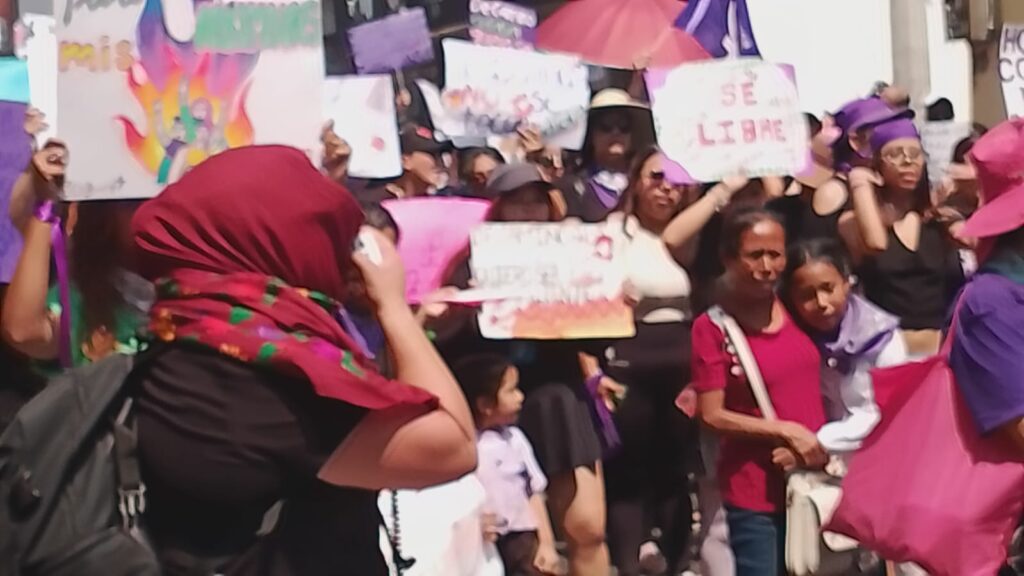 Un muy nutrido contingente de mujeres de todas las edades conformado por víctimas de la delincuencia, madres buscadoras, estudiantes universitarias, amas de casa sindicalistas y mujeres de “a pie” avanza al Zócalo de Cuernavaca.