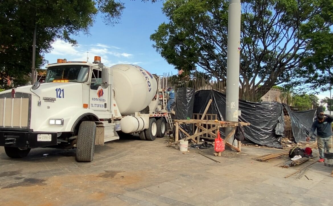 La Secretaría de Infraestructura del Gobierno del Estado inició en la “Plaza de Armas General Emiliano Zapata Salazar” de Cuernavaca las labores de colado de la losa de cimentación del basamento de gran resistencia donde será colocado en los próximos días el monumento del “Caudillo del Sur”, que actualmente se encuentra en el Paso Exprés.