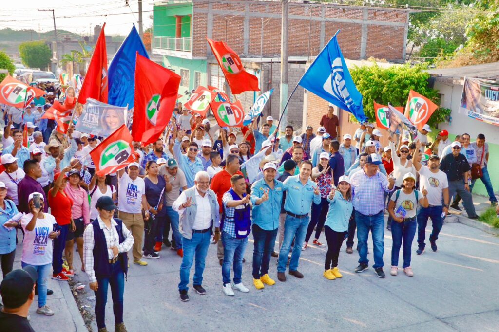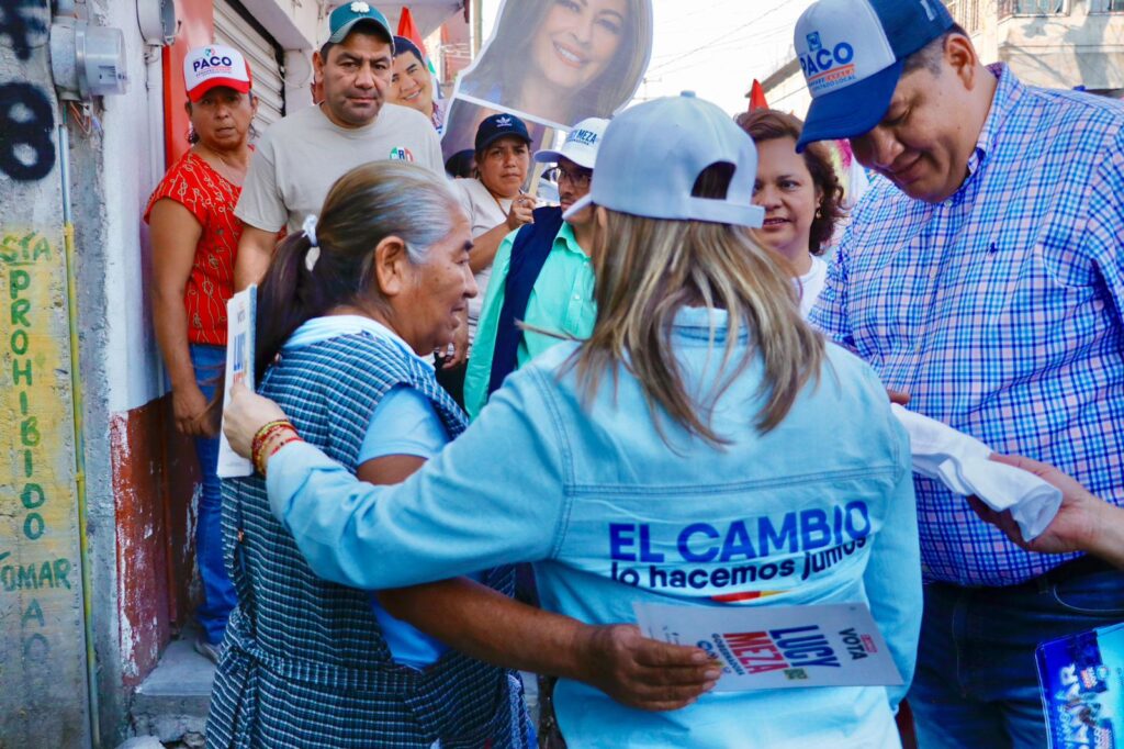 Junto con los candidatos de la coalición, Paco Sánchez y Verónica Anrubio, la candidata del cambio, Lucy Meza, fue recibida en medio de una algarabía por parte de las familias de la comunidad, quienes se declararon listos para salir a votar, este dos de junio por el cambio.