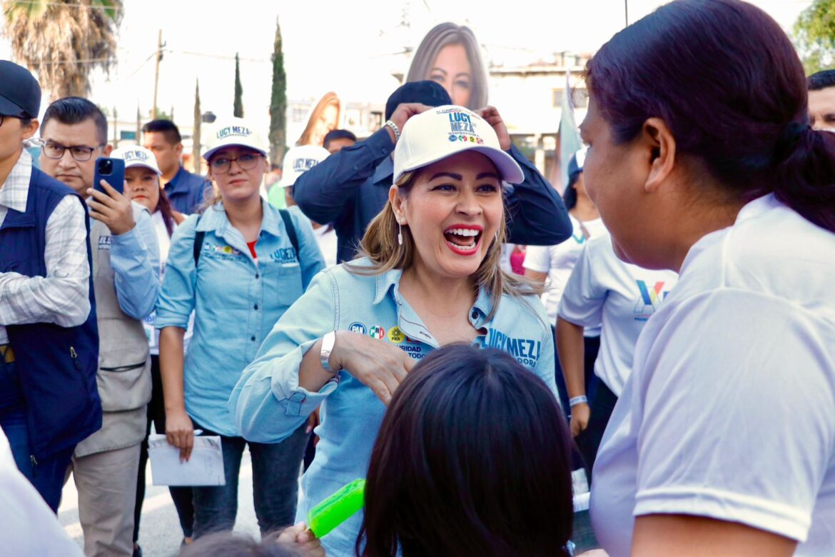 Junto con los candidatos de la coalición, Paco Sánchez y Verónica Anrubio, la candidata del cambio, Lucy Meza, fue recibida en medio de una algarabía por parte de las familias de la comunidad, quienes se declararon listos para salir a votar, este dos de junio por el cambio.