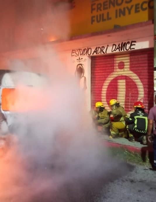 Los hechos ocurrieron en la calle Plan de Ayala esquina Guadalupe de la colonia 10 de Abril, donde se reportó un vehículo en llamas, mismo que fue sofocado por el personal.