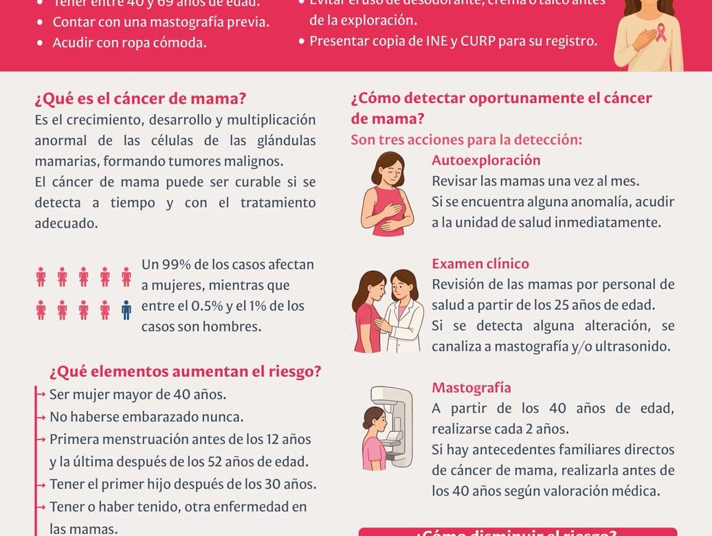 La Dirección de Salud del Ayuntamiento de Tepoztlán invita a todas las mujeres del municipio a participar en la Campaña Gratuita de Mastografías, una acción crucial para la detección temprana y la prevención del cáncer de mama.
