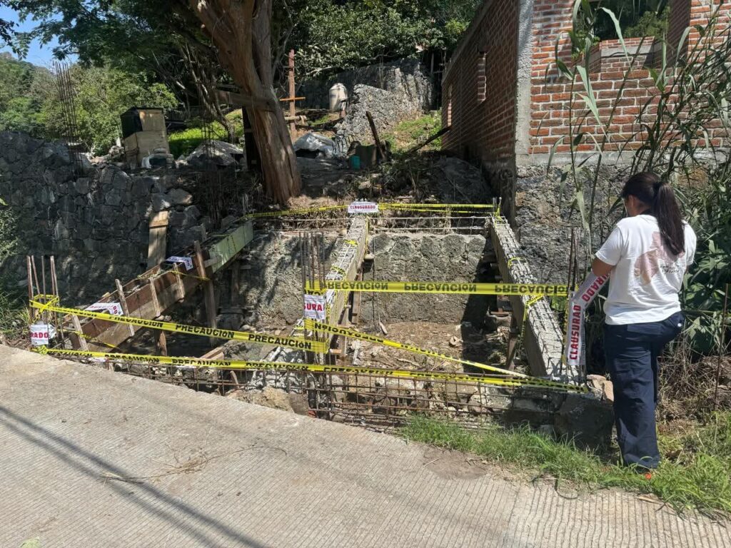 Según informó el Ayuntamiento de Tepoztlán, la construcción fue detenida por no contar con los permisos correspondientes, además de invadir una zona de barranca, lo cual representa un riesgo ambiental y urbano.