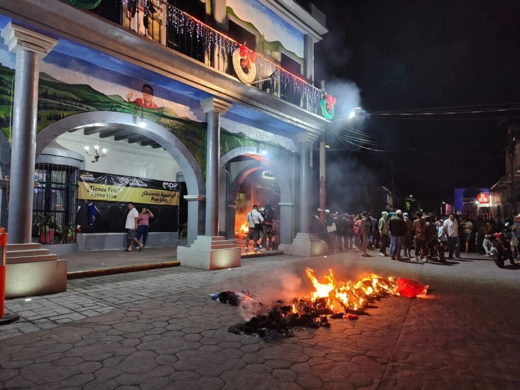 Vecinos de la comunidad de San Gabriel Amacuitlapilco tomaron las instalaciones de la presidencia municipal de Jonacatepec y le prendieron fuego al árbol instalado en la cabecera municipal.