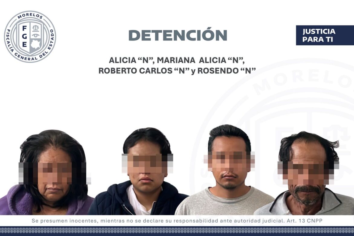 Los detenidos son Rosendo “N”, de 58 años; Roberto Carlos “N”, de 23 años; Mariana Alicia “N”, de 21 años; y Alicia “N”, de 50 años; quienes quedaron a disposición del agente del Ministerio Público (MP) especializado por delito contra la salud.