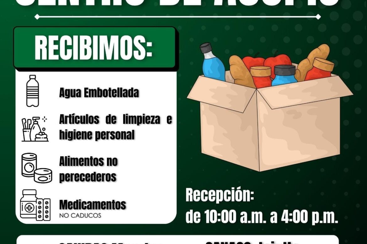 Detalló que los productos que más se necesitan son alimentos enlatados con apertura manual, agua embotellada, artículos de higiene personal y productos de limpieza.