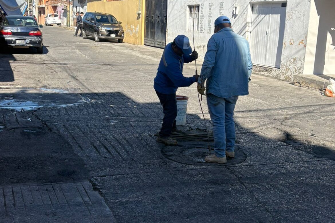 Personal de SAPAC se encuentra realizando trabajos de inspección en la calle Jacaranda, colonia Satélite.
