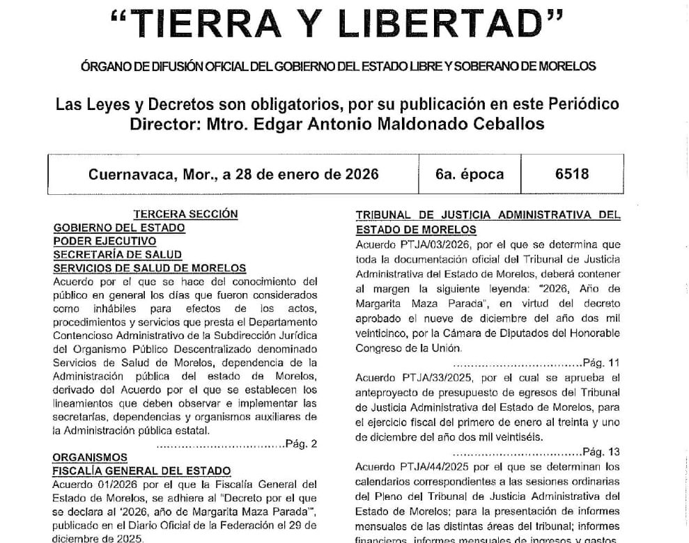 Dicho acuerdo tiene vigencia a partir del 28 de enero, con una duración de 180 días naturales, contados desde su fecha de publicación.