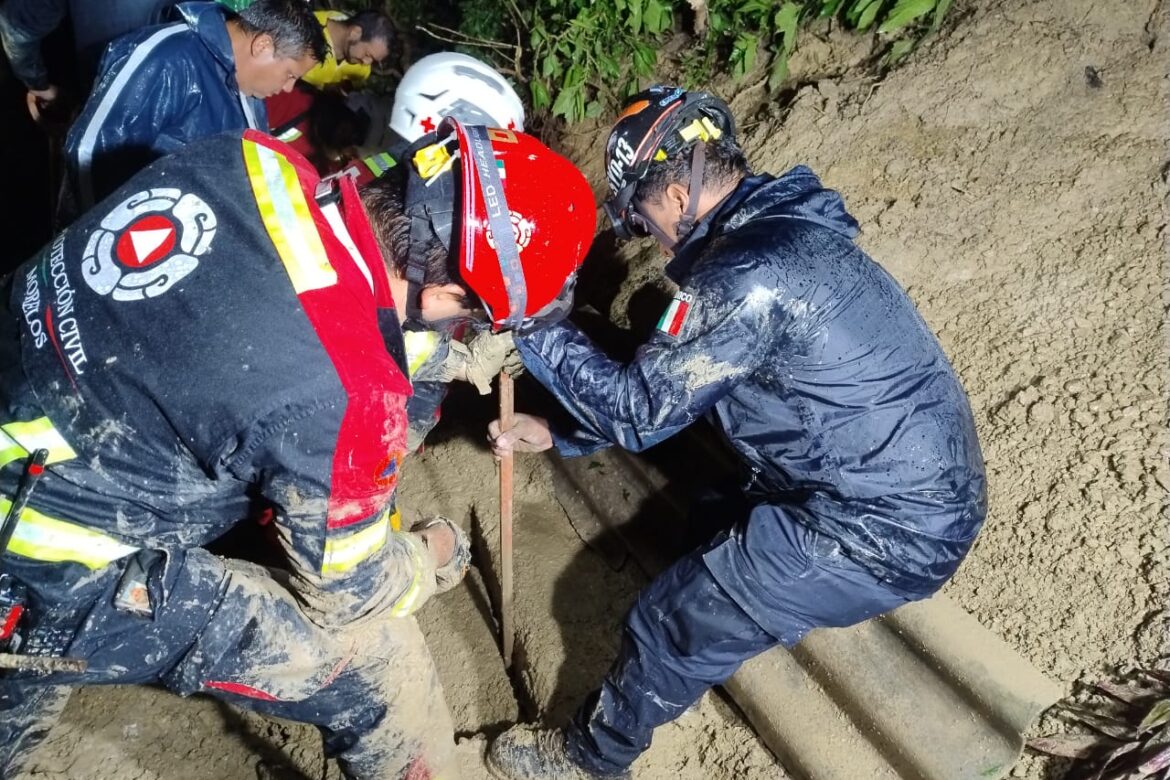 Desde las 3:00 horas de este día personal de la Dirección de Protección Civil y Rescate brindan servicio para rescatar a las personas afectadas por el incidente, que tuvo como origen el reblandecimiento del terreno a causa de la lluvia.