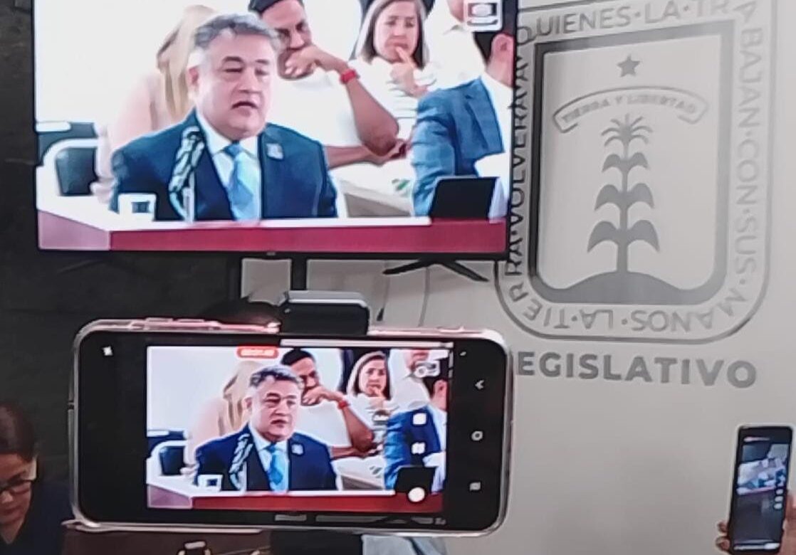 La comparecencia realizada a puerta cerrada en el Salón de Comisiones del Congreso Local, contó con una transmisión por el circuito cerrado en la sede del Poder Ejecutivo.