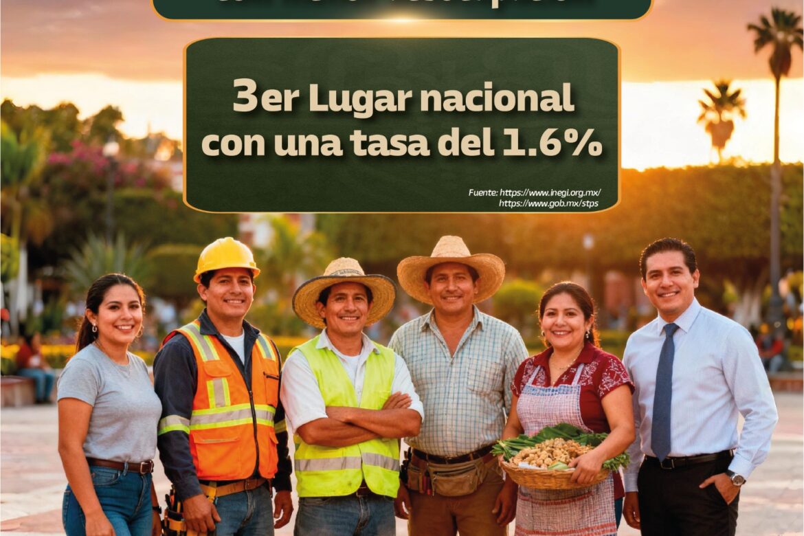 La Secretaría de Desarrollo Económico y del Trabajo, dirigida por José Víctor Sánchez Trujillo, explicó que Morelos ocupa el tercer lugar nacional, sólo detrás de Guerrero y Yucatán, con una tasa comparativa del 2.9 por ciento nacional, lo que confirma el buen desempeño del estado frente al resto del país.