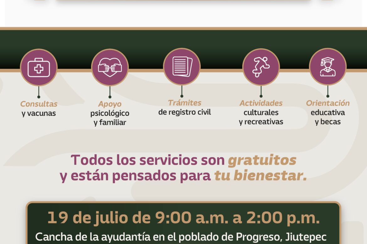 • Este sábado se instalarán módulos de las diferentes dependencias del Poder Ejecutivo en el poblado de Progreso, municipio de Jiutepec, para brindar servicios gratuitos a la ciudadanía