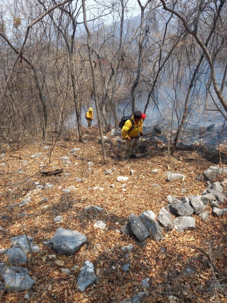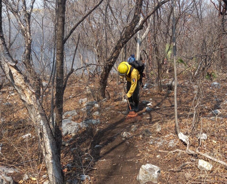 En Puente de Ixtla los combatientes trabajaron la supresión del fuego en el paraje “El Salto”, en donde se alcanzó el control de un 100% por ciento de control y 100 por ciento de liquidación.