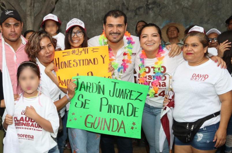 David Ortiz estuvo acompañado por la candidata de MORENA a la diputación por el distrito 12 local, Melissa Montes de Oca quien se comprometió a etiquetar recursos económicos para llevar a cabo obras y acciones de beneficio social en Jiutepec.