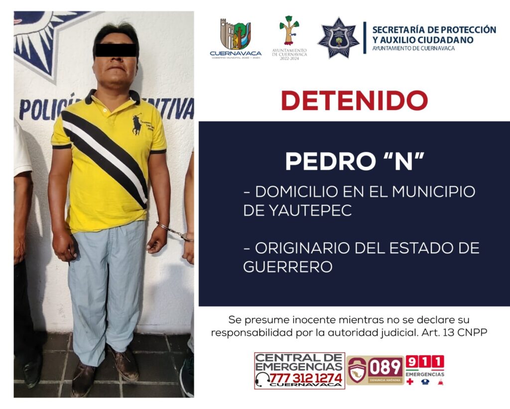 • Pedro “N” de 46 años, con un arma de fuego tipo revólver. Con domicilio en el municipio de Yautepec, originario de Guerrero.