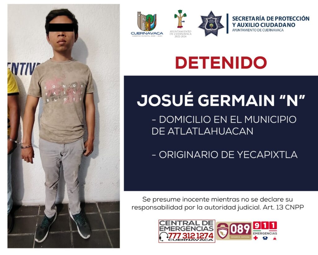 • Josué Germain “N”, con domicilio en el municipio de Atlatlahucan, originario de Yecapixtla.