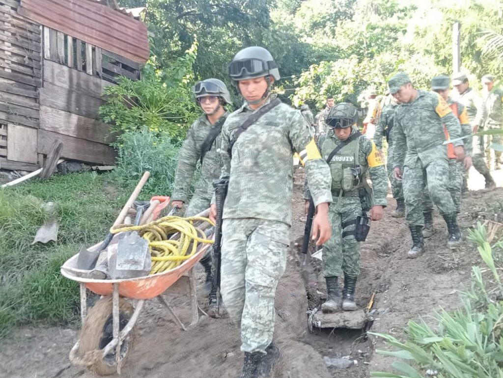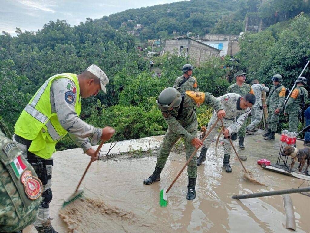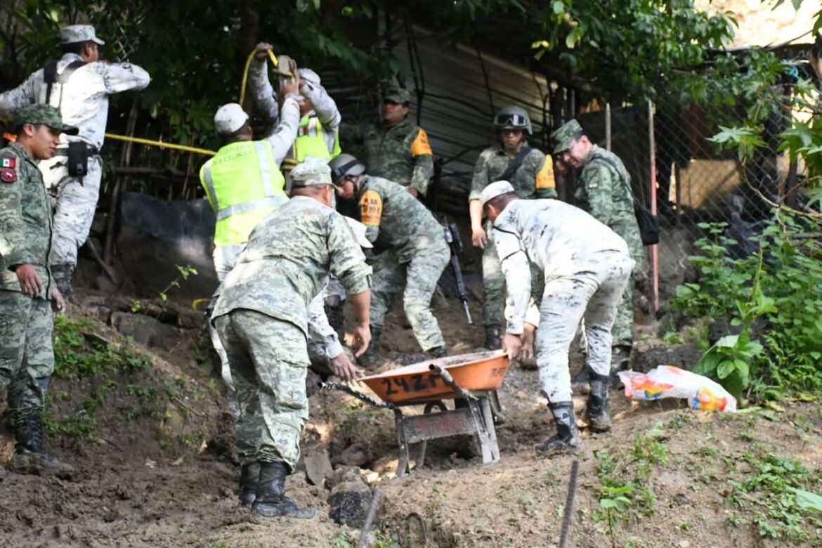 Personal militar y de la Guardia Nacional empeñó sus esfuerzos en labores de remoción de tierra, piedras, troncos, ramas y escombros, empleando herramientas de mano, así como apoyo de rescate de las víctimas, por lo que se procedió de manera coordinada con autoridades de Protección Civil para rescatar a las personas atrapadas, donde fueron localizados 3 menores de edad sin vida, dentro de una vivienda afectada.