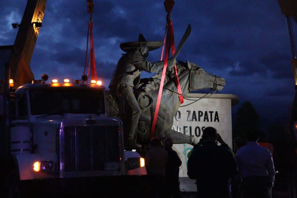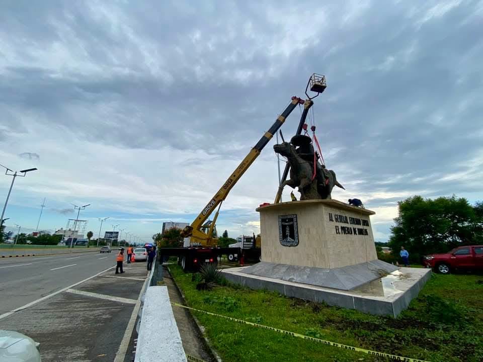 La tarde de este viernes, dio inició el retiro del monumento del General Emiliano Zapata del Paso Exprés para ser instalado en la Plaza de Armas, que lleva su nombre.