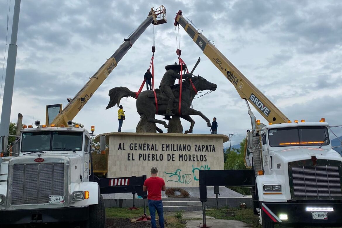 los trabajos de reubicación de la efigie forman parte de un proyecto integral instruido por la gobernadora Margarita González Saravia, para dignificar la figura que representa a Emiliano Zapata en la historia de Morelos y de México.